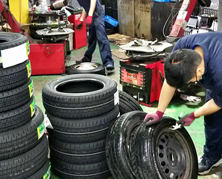 パンクしたタイヤの交換修理を行いました